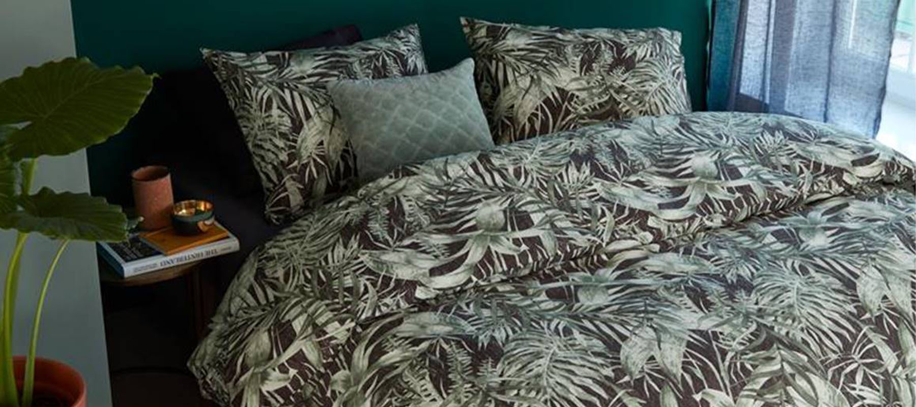 Planten in de kamer zijn dus goed voor je gezondheid én slaapritme. Nu moeten we iets opbiechten. Planten zijn natuurlijk super leuk in een interieur, maar verschillende studies hebben aangetoond dat de algemene affiniteit met het buitenleven onze gezondheid en ons humeur positief bevordert. Dit betekent dat slechts het zien van de kleur groen hier al voor zorgt. Heb je dus liever geen planten in de slaapkamer? Een groen likje verf op de muur, een botanisch dekbedovertrek of natuurlijke materialen dragen ook bij. Maar zij zuiveren de lucht niet!