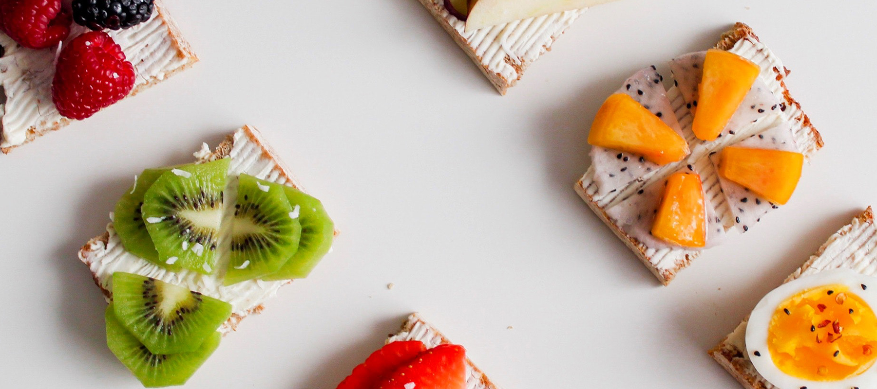 Vergeet ook zeker crackers niet. Het klinkt misschien wat saai, maar dat hoeft zeker niet het geval te zijn. Je kunt crackers namelijk heel gemakkelijk rijkelijk beleggen. Onze favoriet zijn volkorencrackers met Hüttenkase, rosbief en ei.