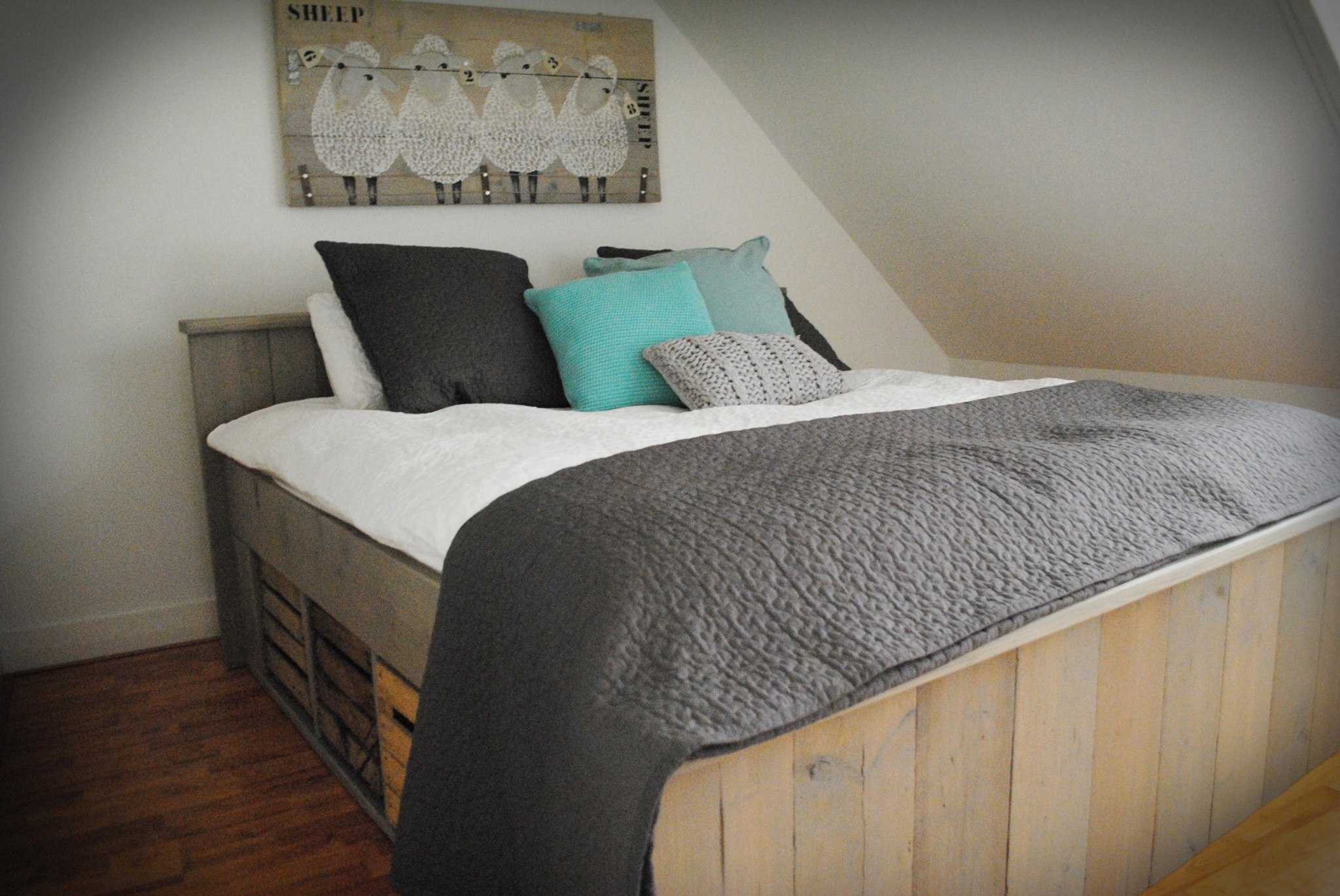 Een van de meest populaire bedden van Livengo is het steigerhouten bed met fruitkistjes. De authentieke fruitkisten zijn afkomstig uit Duitsland en zijn in de boomgaard gebruikt bij het plukken van fruit. Ze krijgen bij Livengo een tweede leven en bieden ook nog eens tal van opbergruimte. Wie droomt er nou niet van zo’n handig kunstwerk in de slaapkamer?!