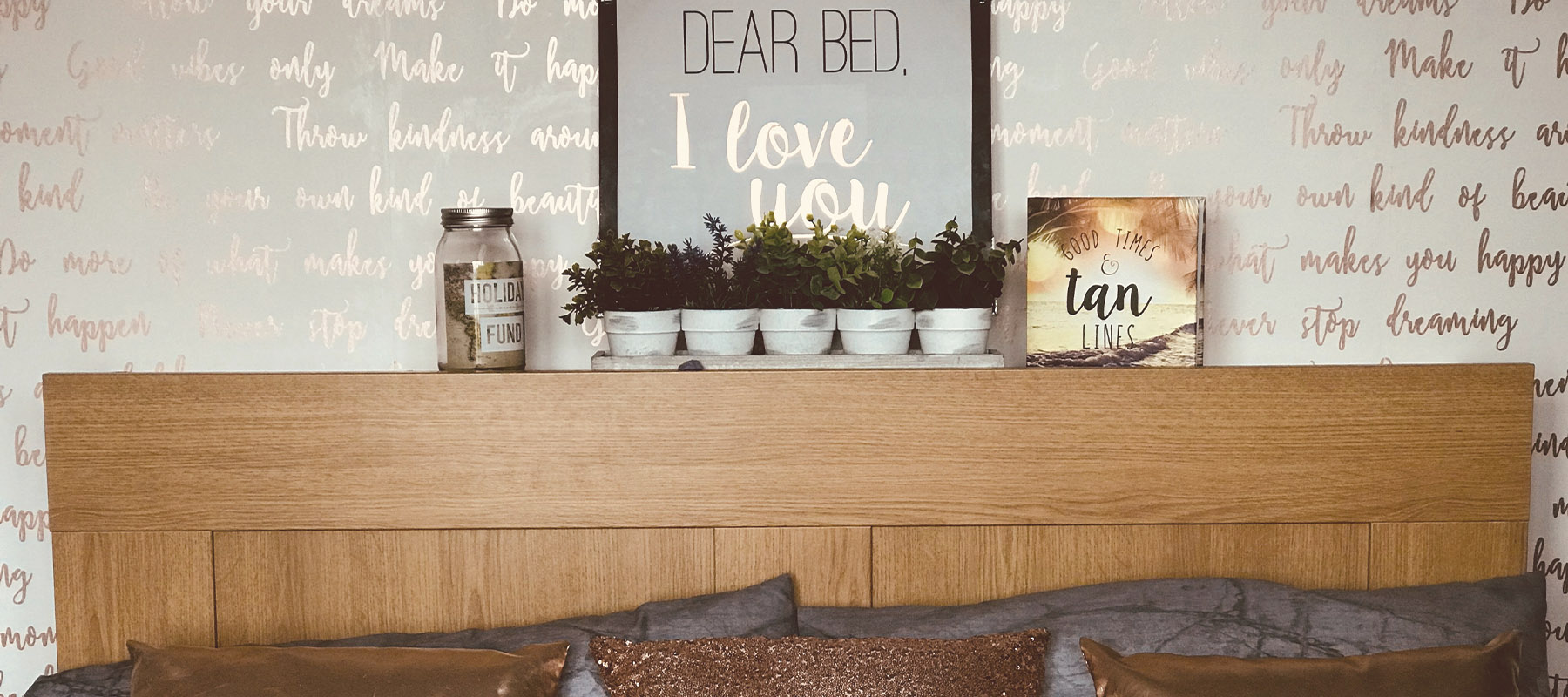 Een inspirerende quote van een beroemdheid of gewoon een korte, pakkende tekst kun je letterlijk en figuurlijk overal kwijt. De mogelijkheden om een tekst boven je bed te plaatsen zijn dan ook haast ontelbaar. Zo zijn er diverse stickers van teksten te bestellen, of kun je een neon-lamp kopen van een bepaalde tekst. Ook een foto van een bepaalde spreuk op een leuke achtergrond afdrukken en in een fotolijstje ophangen is mogelijk. Wil je graag wisselen van tekst? Dan is een krijt- of letterbord een leuke optie. Wil je totaal iets anders? Letters zijn van diverse materialen te vormen. Zo kun je ook zelf een tekst op de muur maken d.m.v. touw, hout, steentjes, kabels én nog veel meer.